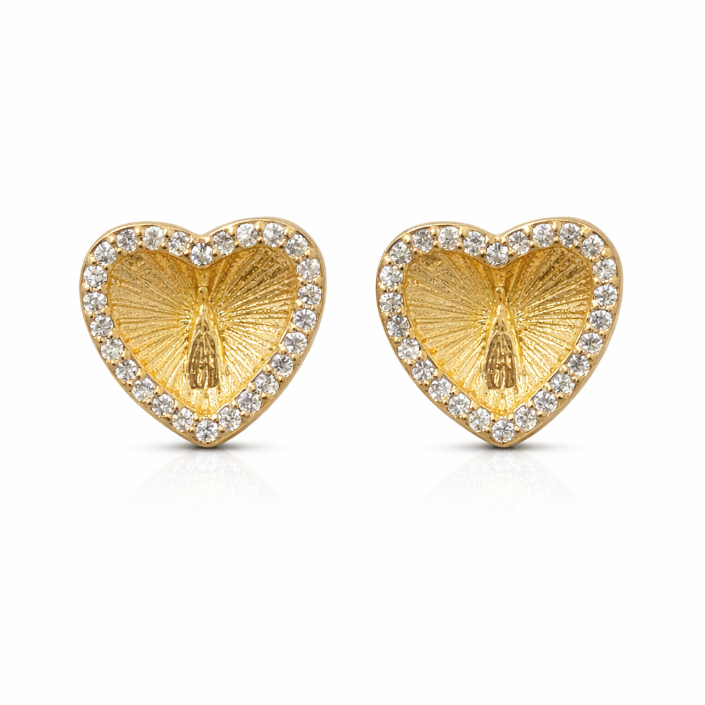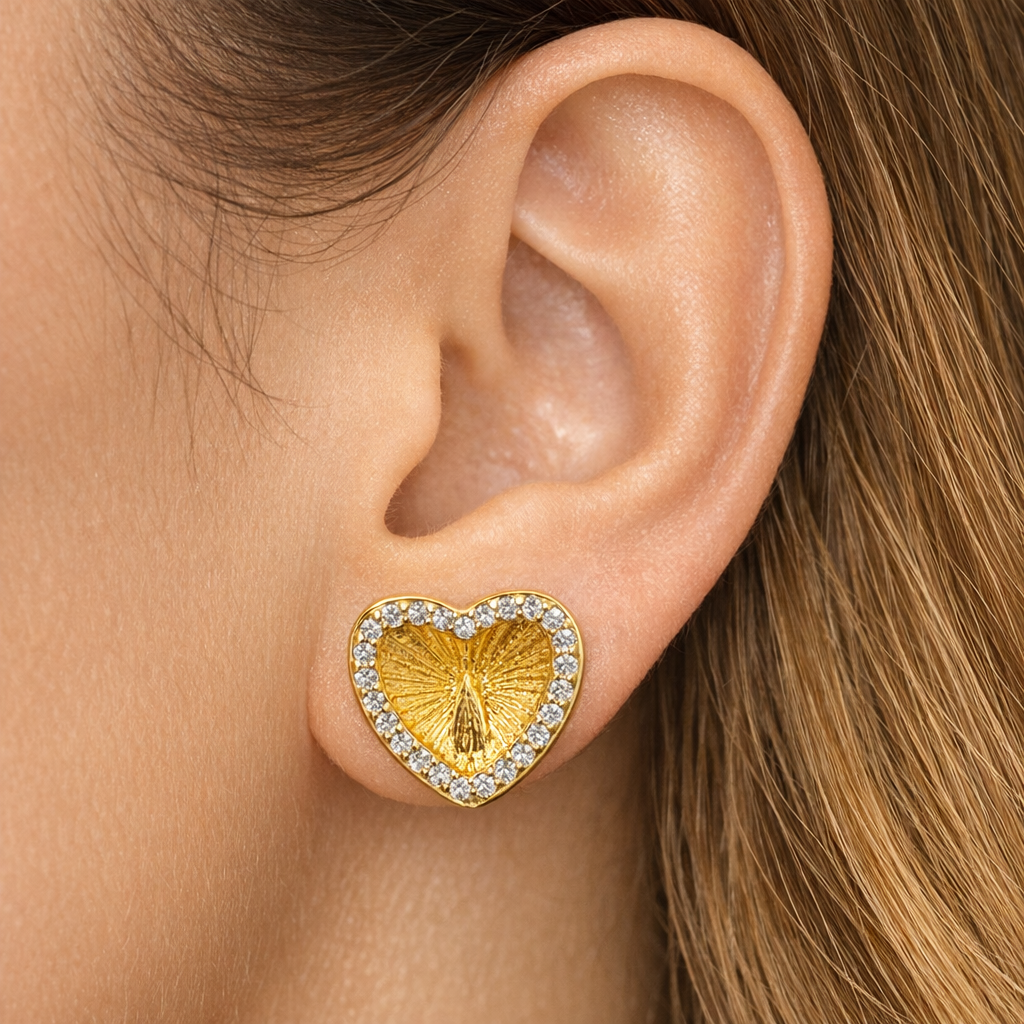 Brinco de Coração com Nossa Senhora das Graças - Zircônio